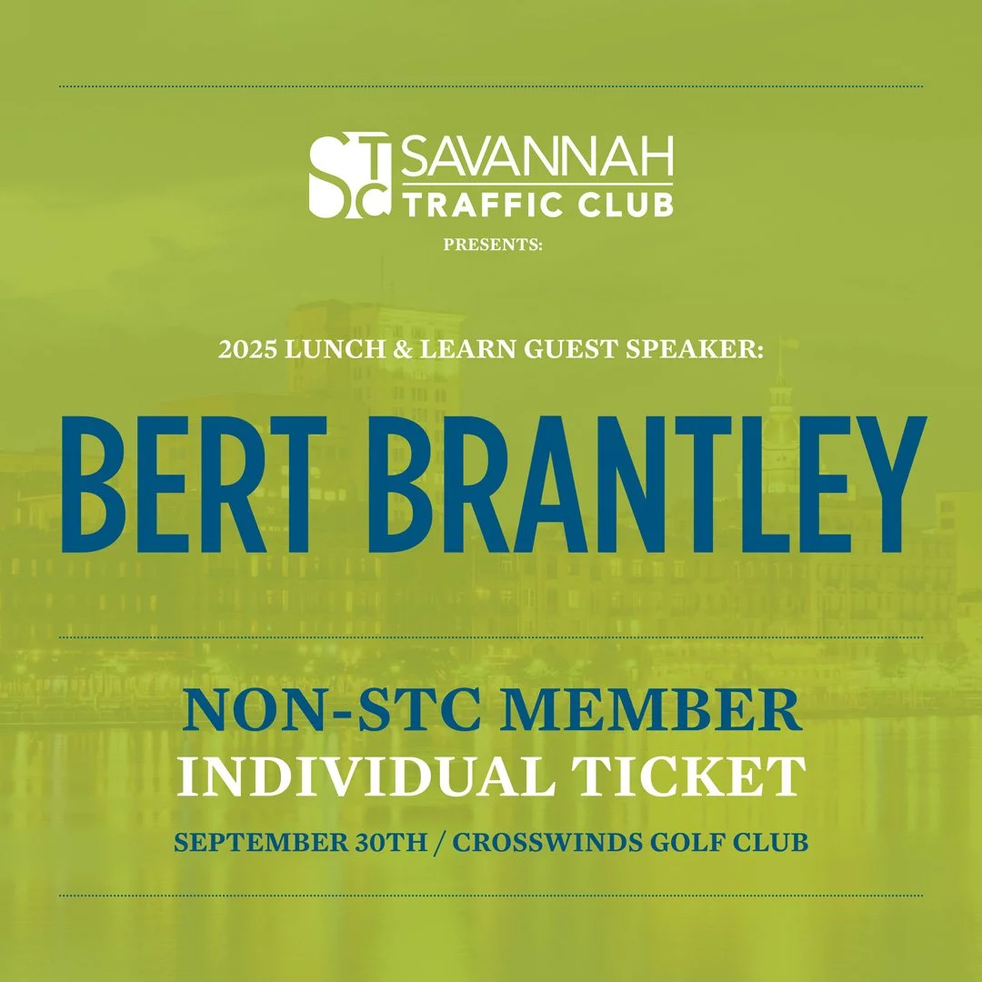 The Savannah Traffic Club is excited to announce the next installment of our Lunch & Learn series, featuring Bert Brantley, President and CEO of the Savannah Area Chamber. This event offers a unique opportunity for professionals in the transportation, logistics, warehousing, and supply chain industries to hear directly from a leader shaping Savannah’s business and infrastructure landscape.